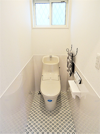 おしゃれな壁紙で雰囲気を良くして、さらに節水便器を採用しています。