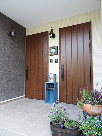 木目調の玄関ドアを採用し、おしゃれな玄関になりました。