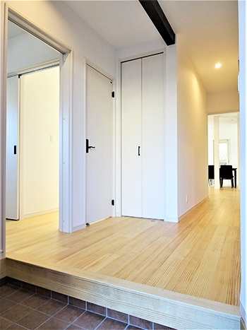白色でまとめた清潔感のある玄関は広く感じます。