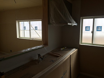 キッチンの組み立ても終わり完成までは養生します。