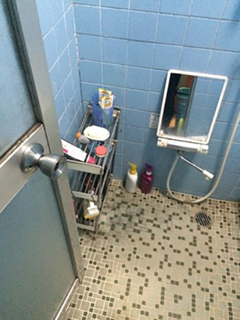 鏡が設置されていない浴室。