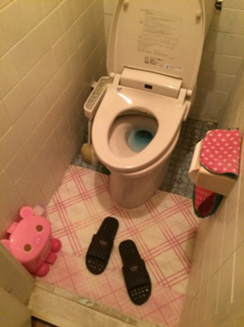 キレイだが掃除が大変なタイルのトイレ。