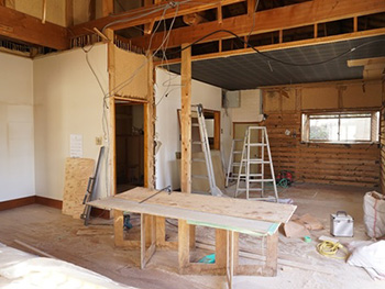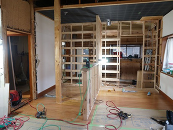 天井を壊します。これからLDKとパントリーの境の壁ができます。
