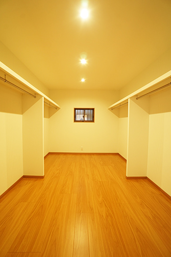 換気の為に窓を新設。家族みんなの服以外にも季節物も片付けることができます。