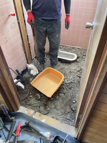 | お客様のご要望 | 昔ながらの和式のトイレ。小便器もあるけれど、掃除も大変。 間仕切りを取り払って、1つの大きい空間にしてお手入れの しやすいトイレにしたい。 |