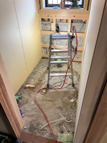 手洗い器は元々ありましたが、もっとオシャレに造作していきます。