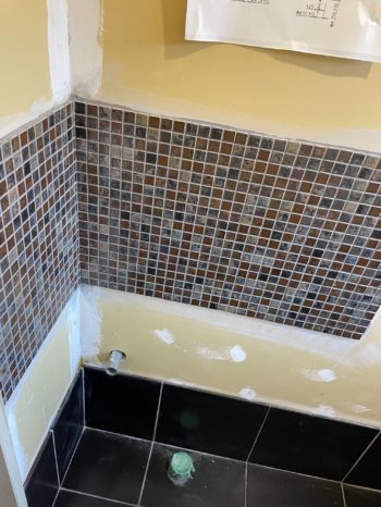 床壁タイルを解体し、新しい壁下地を造作していきます。